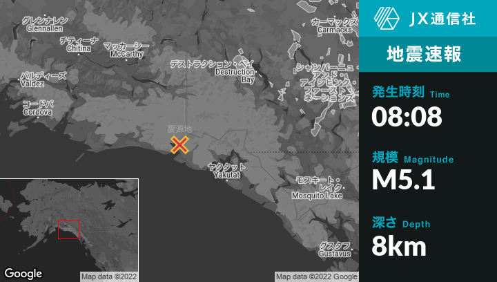 | 震源地 | アラスカのYakutatから北西110kmの地点 |