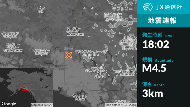 | 震源地 | アラスカのMcCarthyから東119kmの地点 |