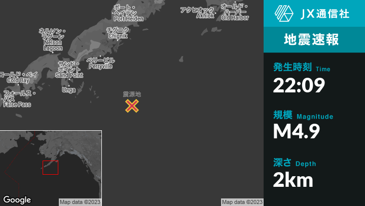 | 震源地 | アラスカのPerryvilleから南南東154kmの地点 |