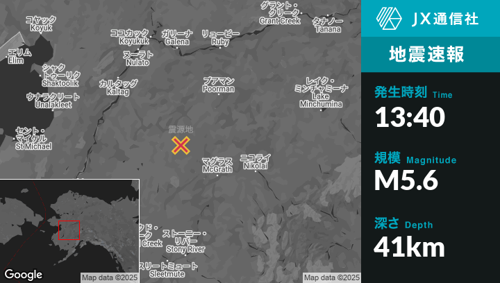 1月30日 13:40頃、アラスカのTakotnaから北西60kmの地点でM5.6の地震がありました。