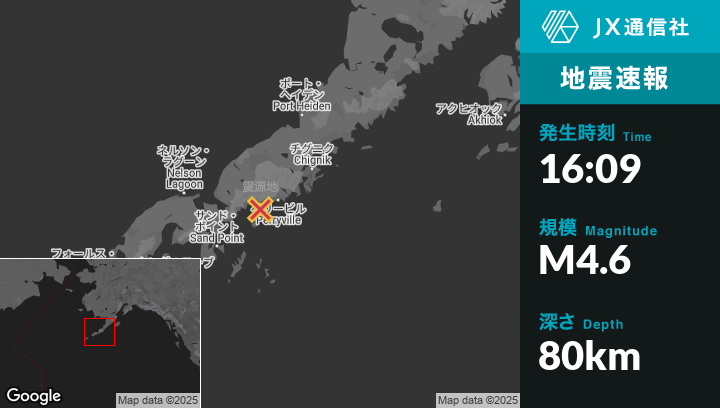 | 震源地 | アラスカのIvanof Bayから南西6kmの地点 |