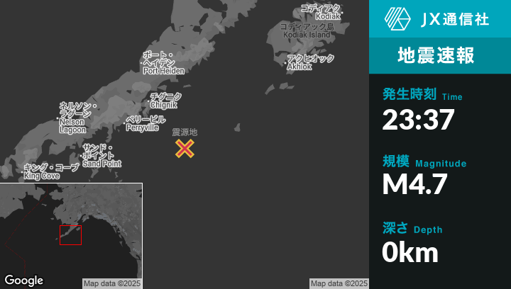 | 震源地 | アラスカのChignikから南東109kmの地点 |