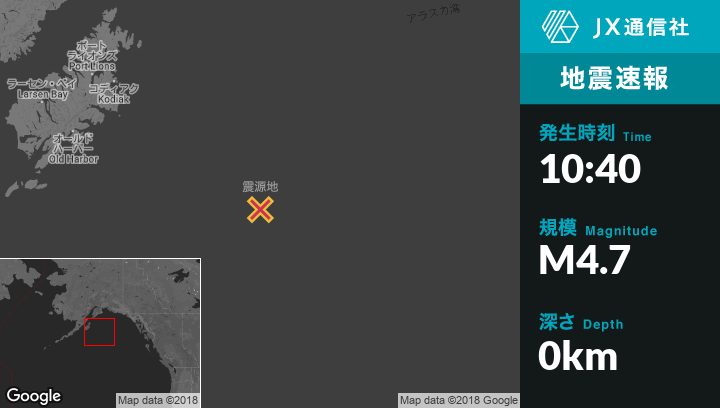 | 震源地 | アラスカのKodiakから南東253kmの地点 |