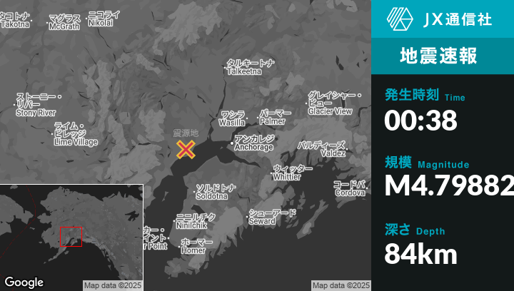 | 震源地 | アラスカのBelugaから西北西14kmの地点 |