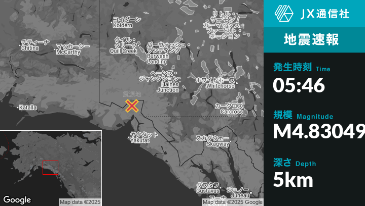 | 震源地 | アラスカのYakutatから北84kmの地点 |