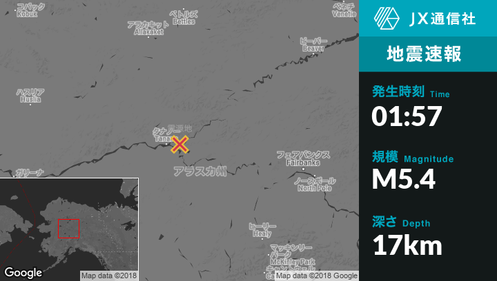 | 震源地 | アラスカのTananaから東北東21kmの地点 |