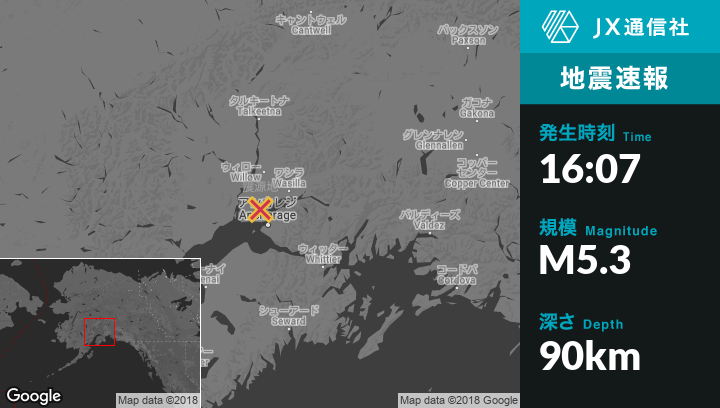 | 震源地 | アラスカのBig Lakeから南西11kmの地点 |