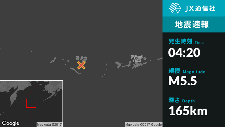| 震源地 | アラスカのSemisopochnoi Islandから南西17kmの地点 |