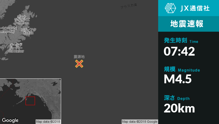 | 震源地 | アラスカのKodiakから東南東267kmの地点 |
