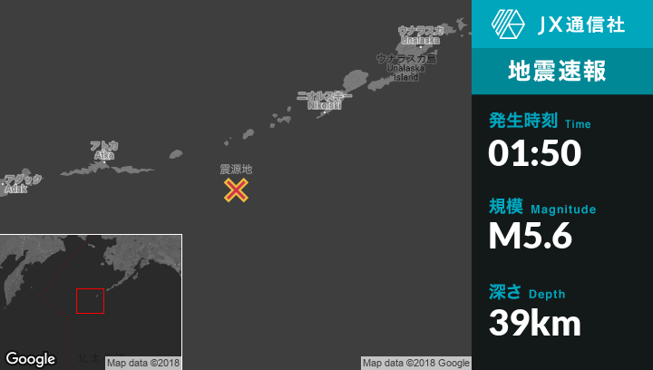 | 震源地 | アラスカのAmukta Islandから南南東71kmの地点 |