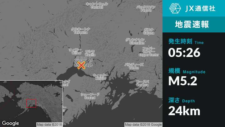| 震源地 | アラスカのBig Lakeから南南西17kmの地点 |