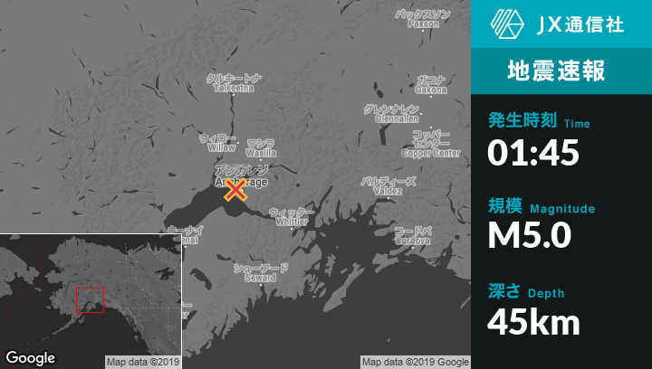| 震源地 | アラスカのAnchorageから北西11kmの地点 |
