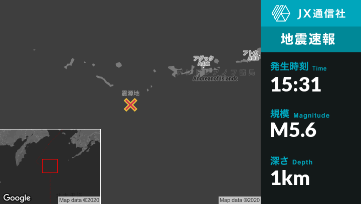 | 震源地 | アラスカのAmatignak Islandから南西65kmの地点 |