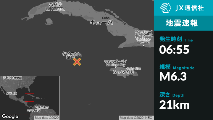 | 震源地 | ケイマン諸島のEast Endから南東49kmの地点 |