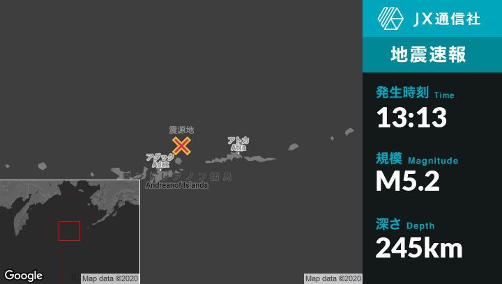 | 震源地 | アラスカのAdakから北東75kmの地点 |