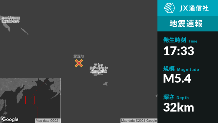| 震源地 | アラスカのAttu Stationから西北西120kmの地点 |