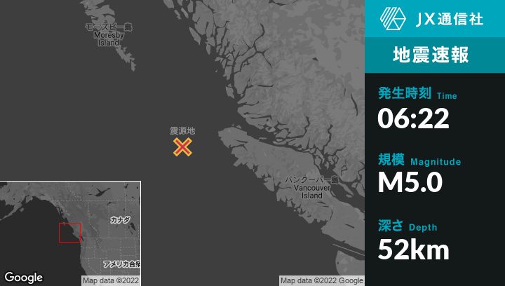 4月24日 06:22頃、カナダのPort McNeillから西170kmの地点でM5.0の地震がありました。