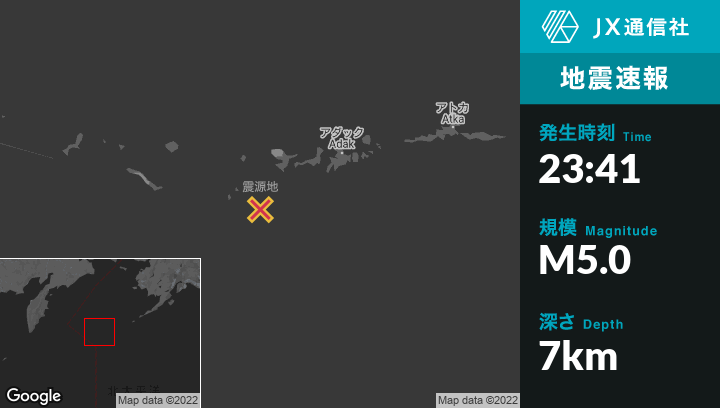 | 震源地 | アラスカのAdakから西南西147kmの地点 |