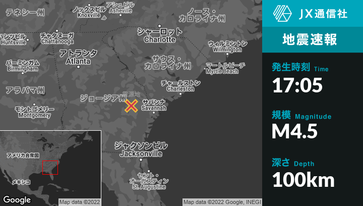 6月18日 17:05頃、ジョージアのMetterから北西5kmの地点でM4.5の地震がありました。