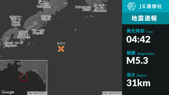 | 震源地 | アラスカのPerryvilleから南東178kmの地点 |
