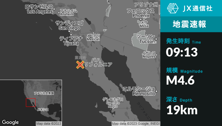 5月15日 09:13頃、メキシコのLas Brisasから南西28kmの地点でM4.6の地震がありました。