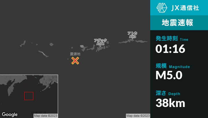 | 震源地 | アラスカのAdakから西南西150kmの地点 |