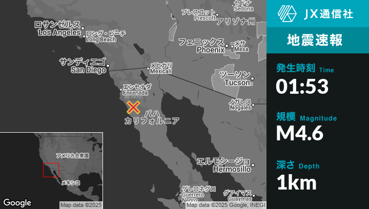 | 震源地 | メキシコのSan Vicenteから東16kmの地点 |