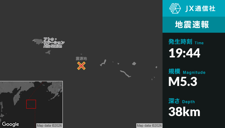 | 震源地 | アラスカのAttu Stationから東南東212kmの地点 |