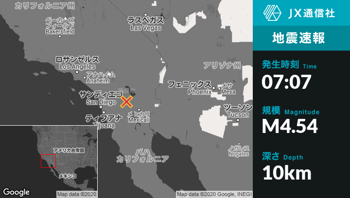 5月11日 07:07頃、カリフォルニアのSalton Cityから南31kmの地点でM4.54の地震がありました。