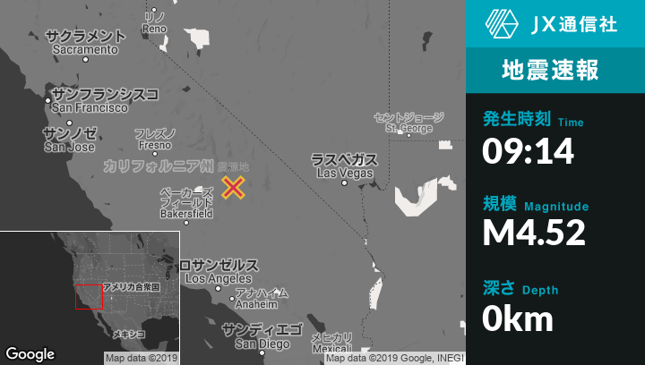 | 震源地 | カリフォルニアのLone Pineから南南東50kmの地点 |