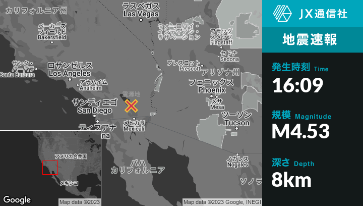4月30日 16:09頃、カリフォルニア州のNilandから南西7kmの地点でM4.53の地震がありました。