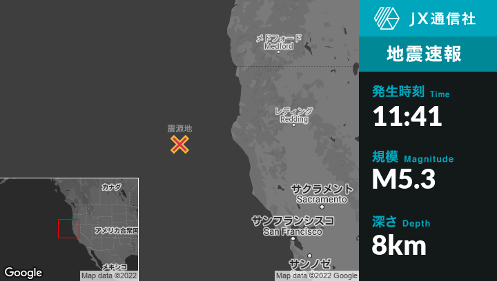 1月06日 11:41頃、カリフォルニアのFerndaleから西南西155kmの地点でM5.3の地震がありました。