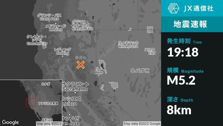 | 震源地 | カリフォルニアのPrattvilleから東3kmの地点 |