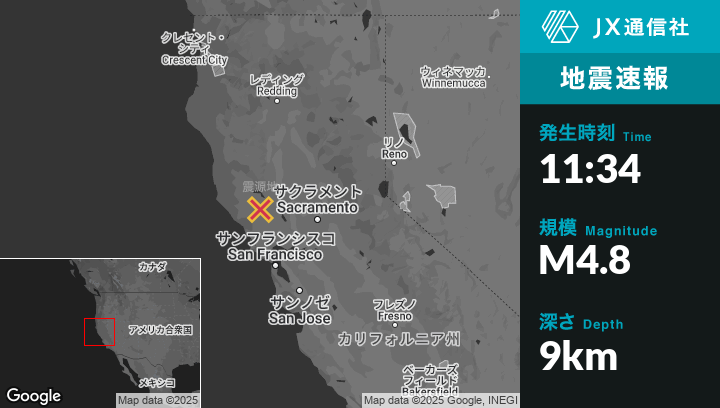 | 震源地 | カリフォルニアのCobbから北西3kmの地点 |