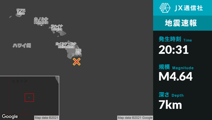 | 震源地 | ハワイのNaalehuから東南東44kmの地点 |