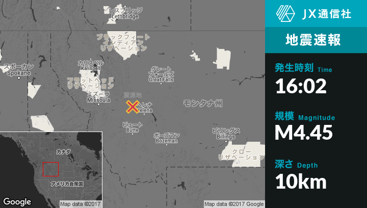 | 震源地 | モンタナ州のLincolnから南東13kmの地点 |
