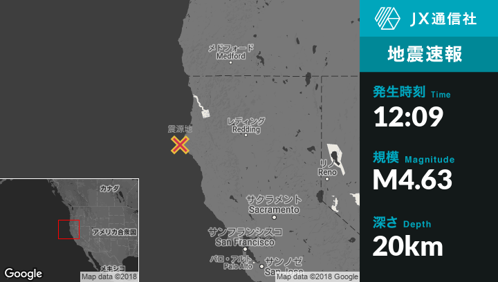 | 震源地 | カリフォルニアのFerndaleから南西23kmの地点 |