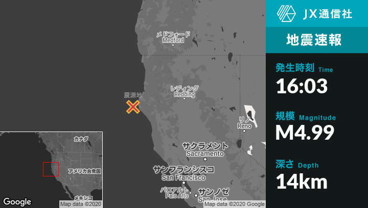 5月18日 16:03頃、カリフォルニアのFerndaleから西南西34kmの地点でM4.99の地震がありました。