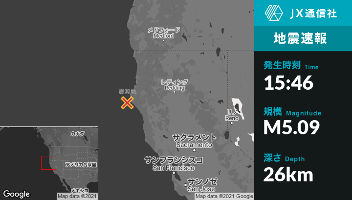 | 震源地 | CAのPetroliaから西19kmの地点 |