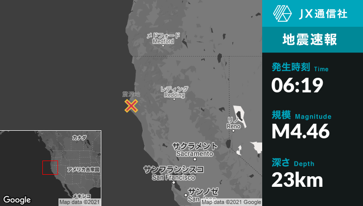 12月21日 06:19頃、CAのFerndaleから南13kmの地点でM4.46の地震がありました。