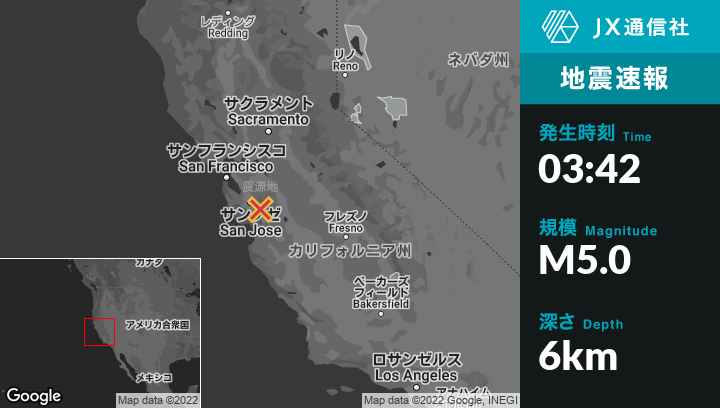| 震源地 | カリフォルニア州のSeven Treesから東14kmの地点 |