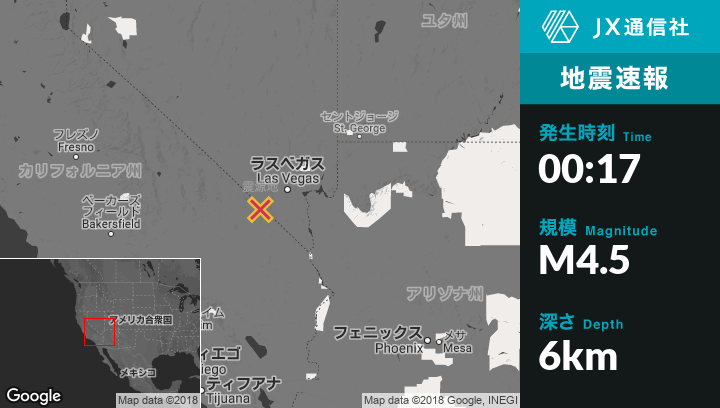 | 震源地 | ネバダ州のSandy Valleyから北西14kmの地点 |