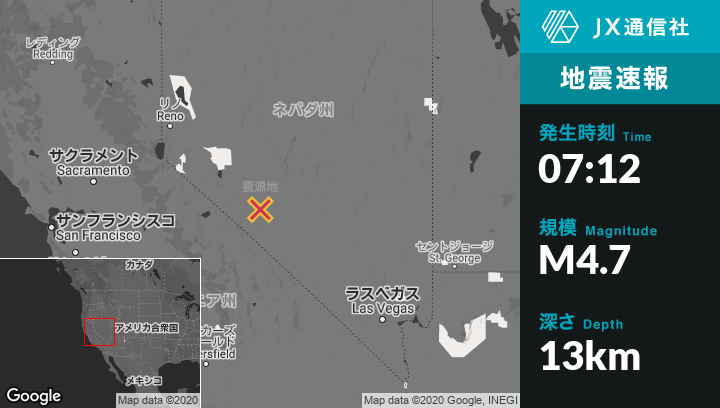 | 震源地 | ネバダのTonopahから西54kmの地点 |