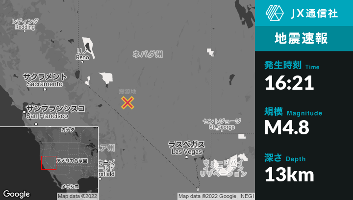 1月05日 16:21頃、ネバダのMinaから南東34kmの地点でM4.8の地震がありました。