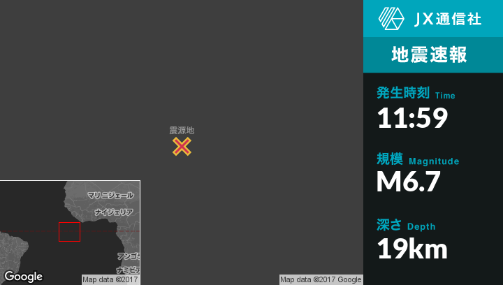 8月18日 11:59頃、セントヘレナのGeorgetownから北783kmの地点でM6.7の地震がありました。