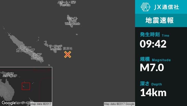| 震源地 | ニューカレドニアのTadineから東120kmの地点 |