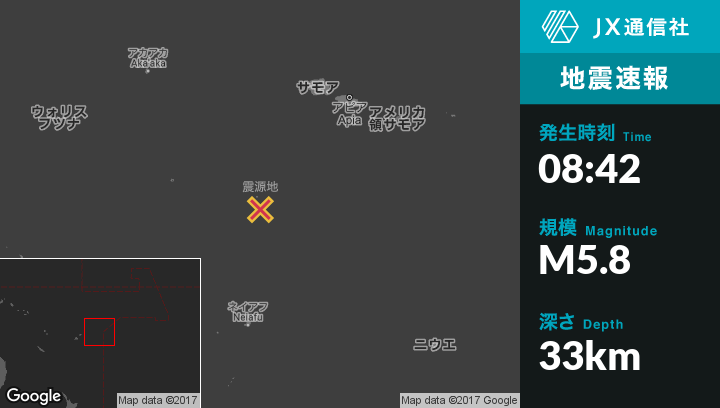 12月09日 08:42頃、トンガのHihifoから南18kmの地点でM5.8の地震がありました。