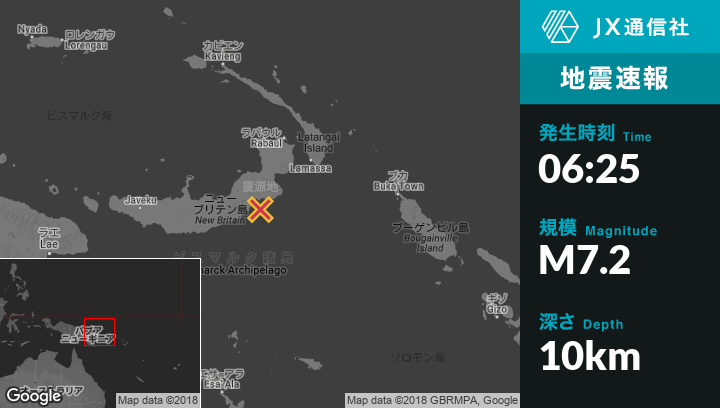 | 震源地 | パプアニューギニアのKokopoから南南西158kmの地点 |