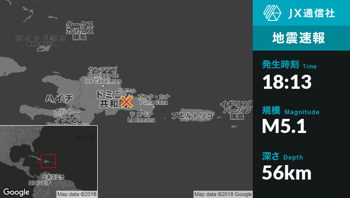 | 震源地 | ドミニカ共和国のGonzaloから東南東12kmの地点 |