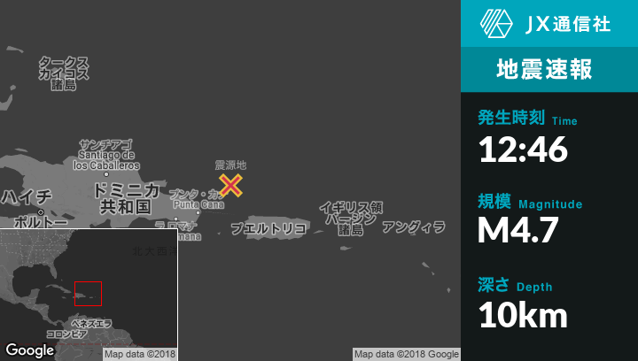 | 震源地 | プエルトリコのSan Antonioから北北西107kmの地点 |